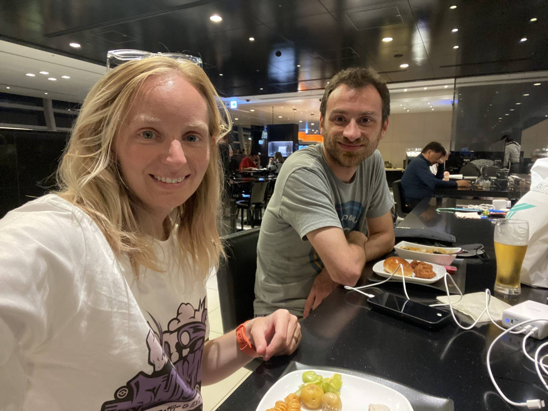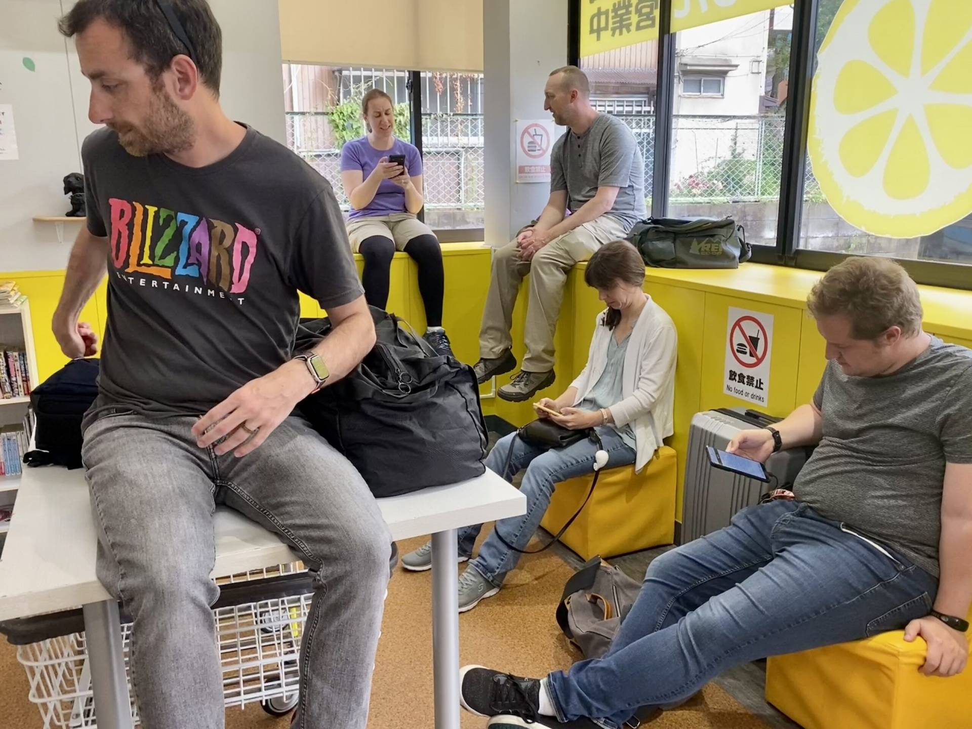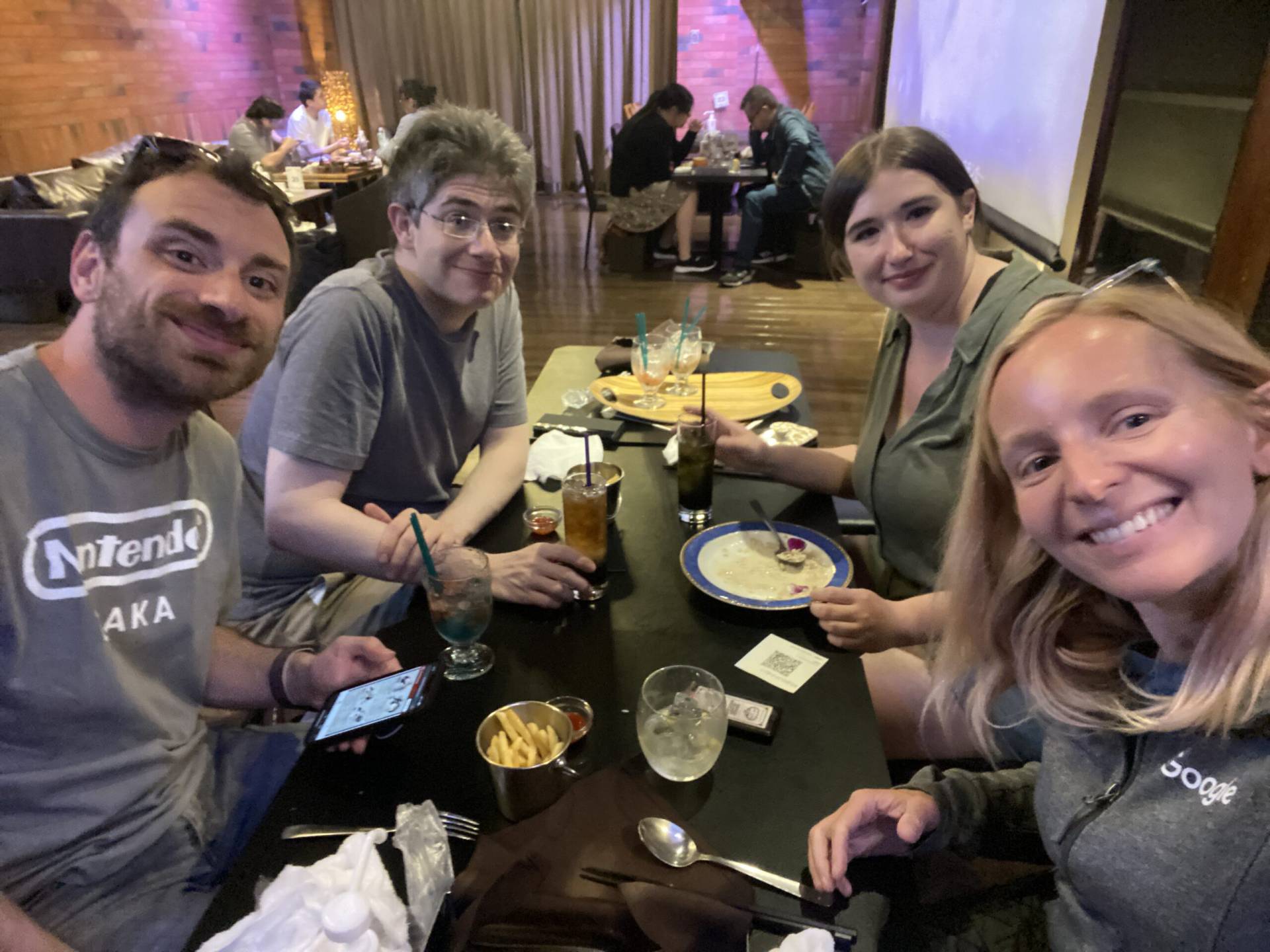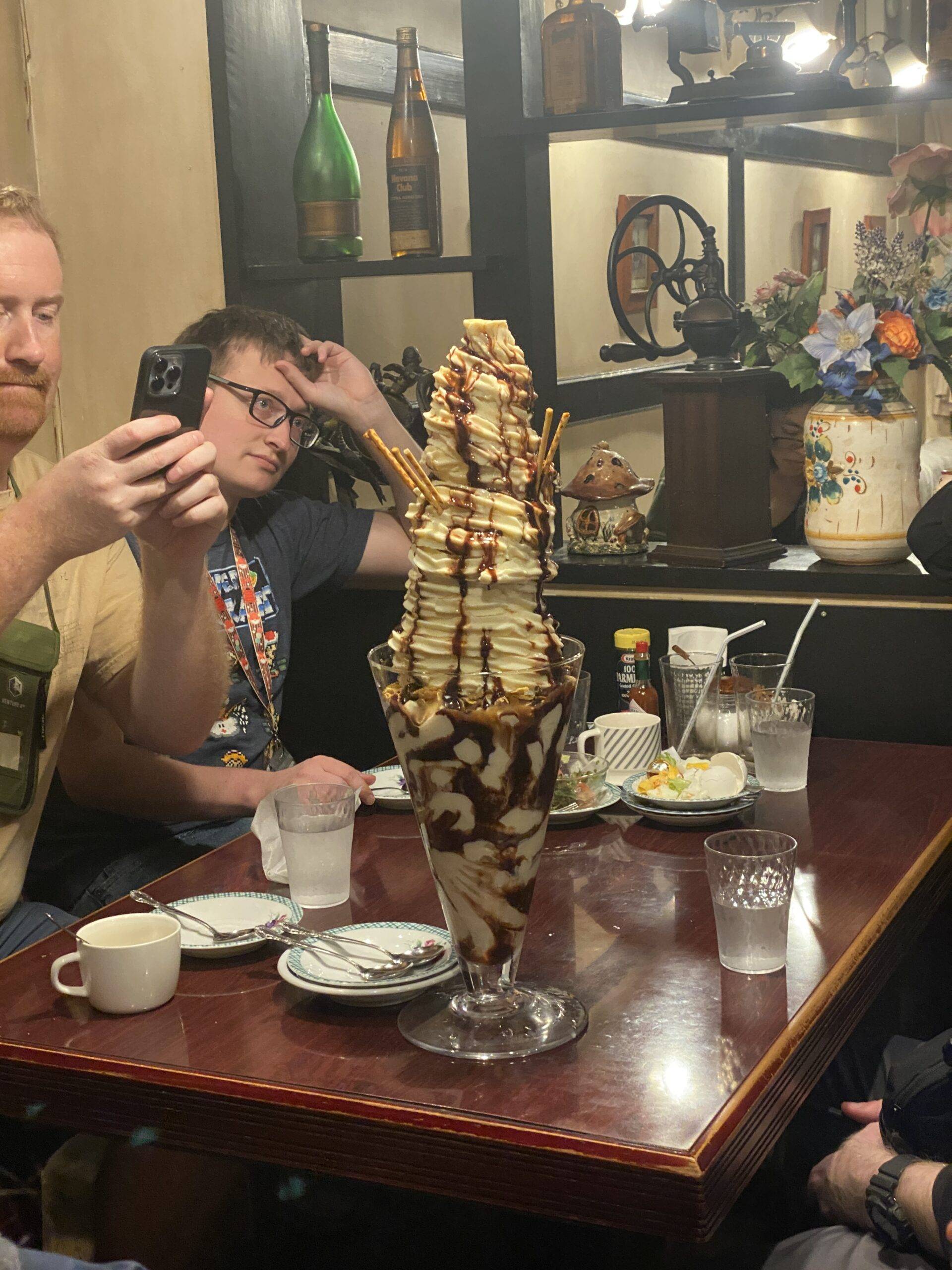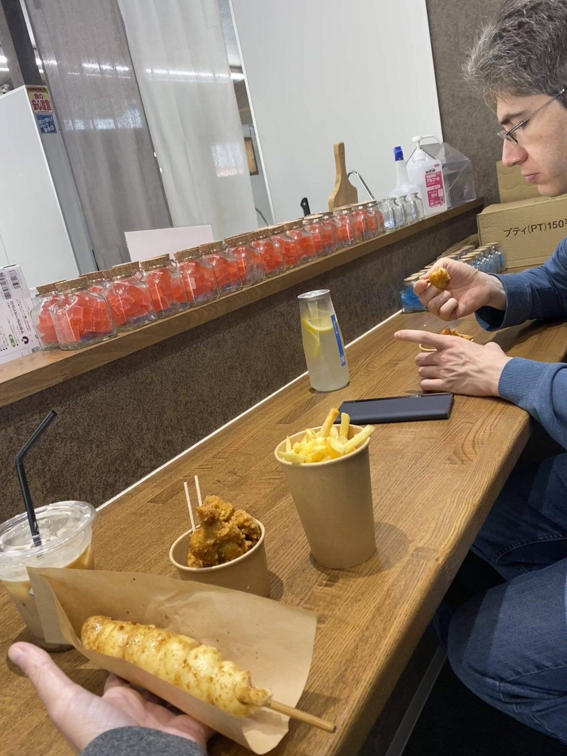 Today we nearly missed our flight while we searched for elusive taco rice but finally made it to Fukuoka, where we took over a dessert + drinks place. 😁