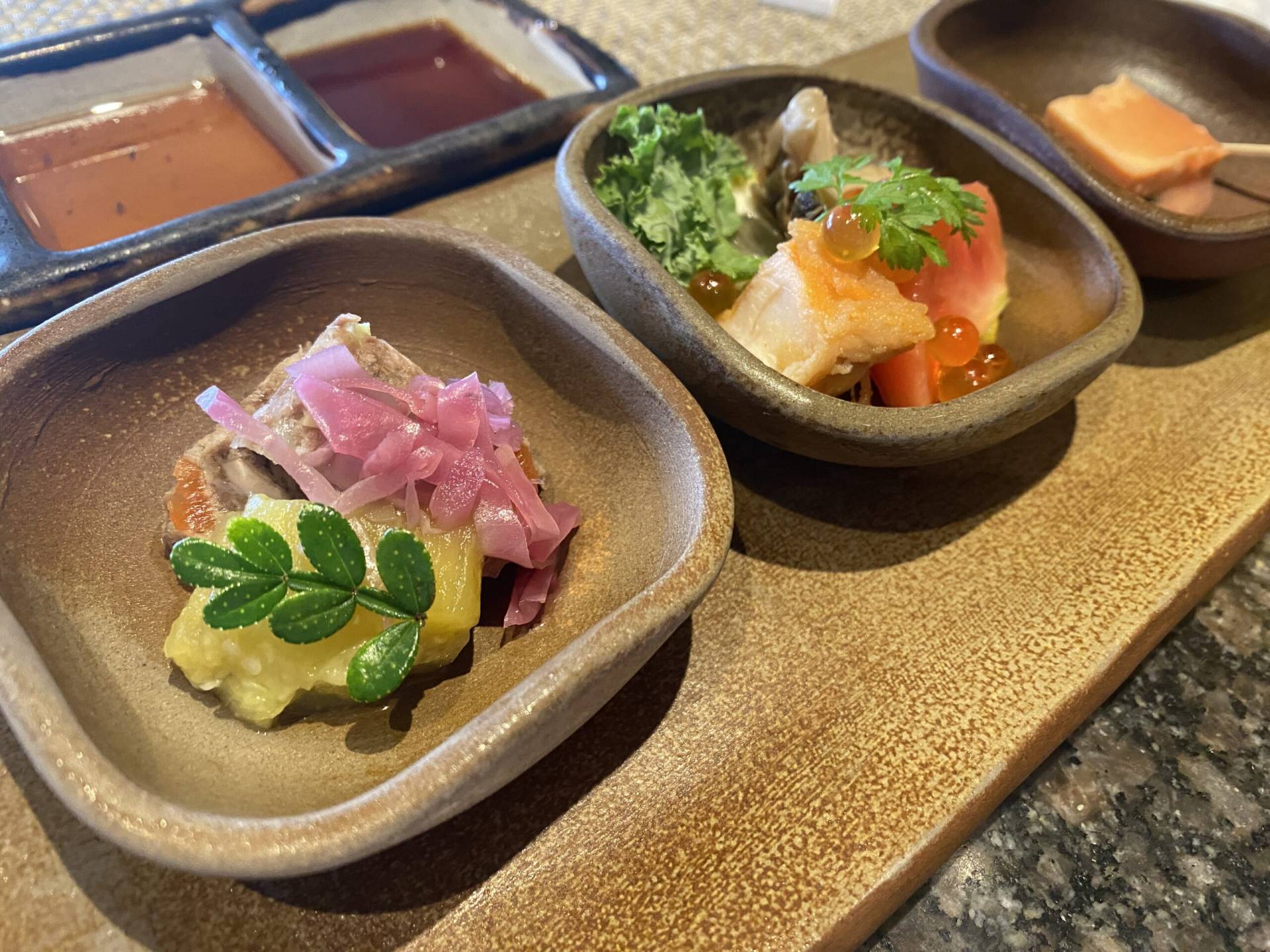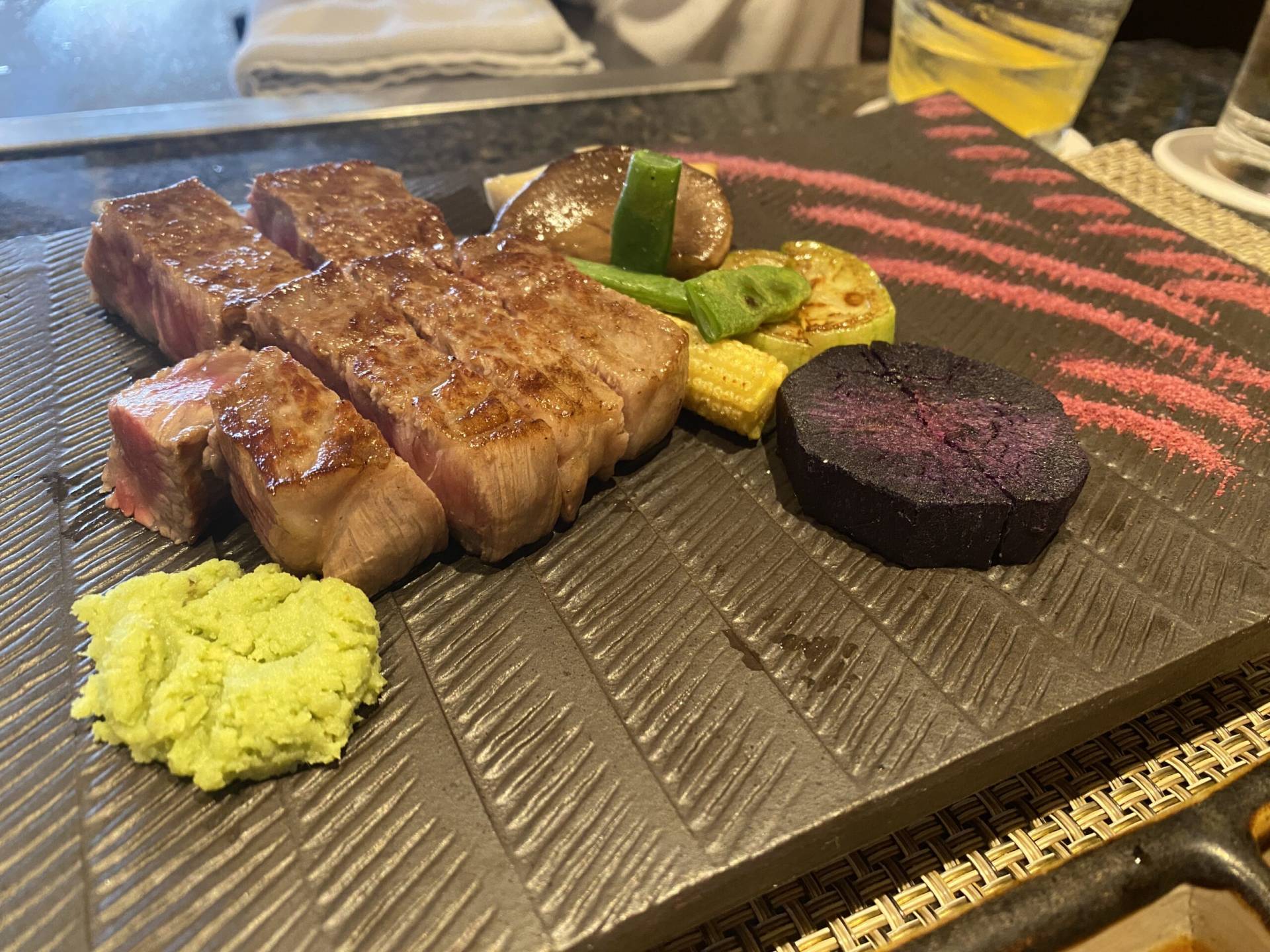 Okinawa is an interesting place. Parts of it seem very Americanized (makes sense due to the large American presence) but others almost seem more traditionally Japanese than we’ve experienced before. I got turned away at the breakfast buffet this morning until I covered my tattoos, whoops. We spent today swimming in the ocean, having an afternoon tea, and indulging in an extremely expensive teppanyaki dinner.