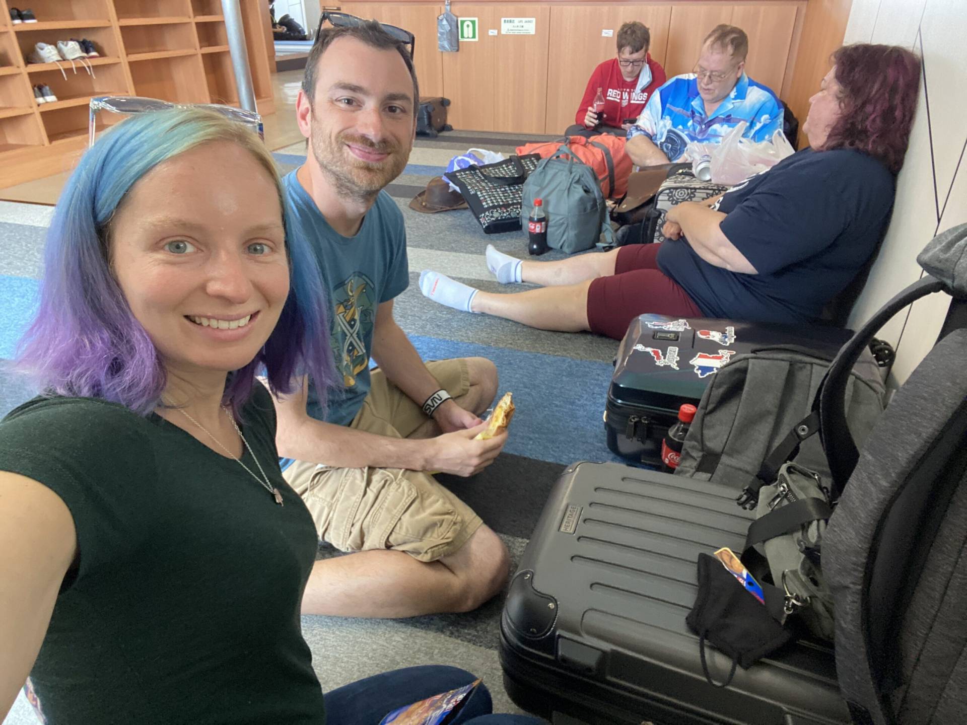We finally reached the hotel after 24 hours straight of travel! It’s just before midnight here but we should sleep well tonight. Originally we weren’t going to travel quite so much today but had to adjust our plans due to the typhoon canceling our original flight.