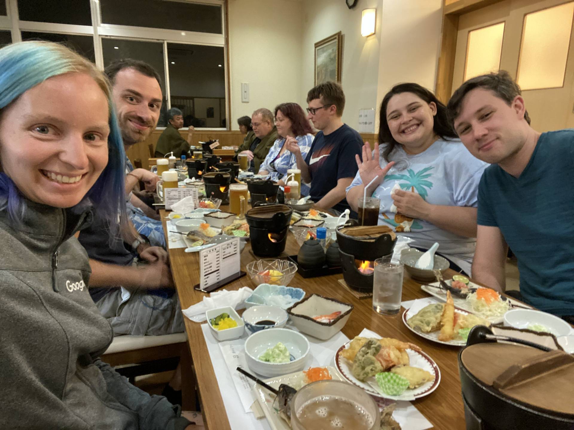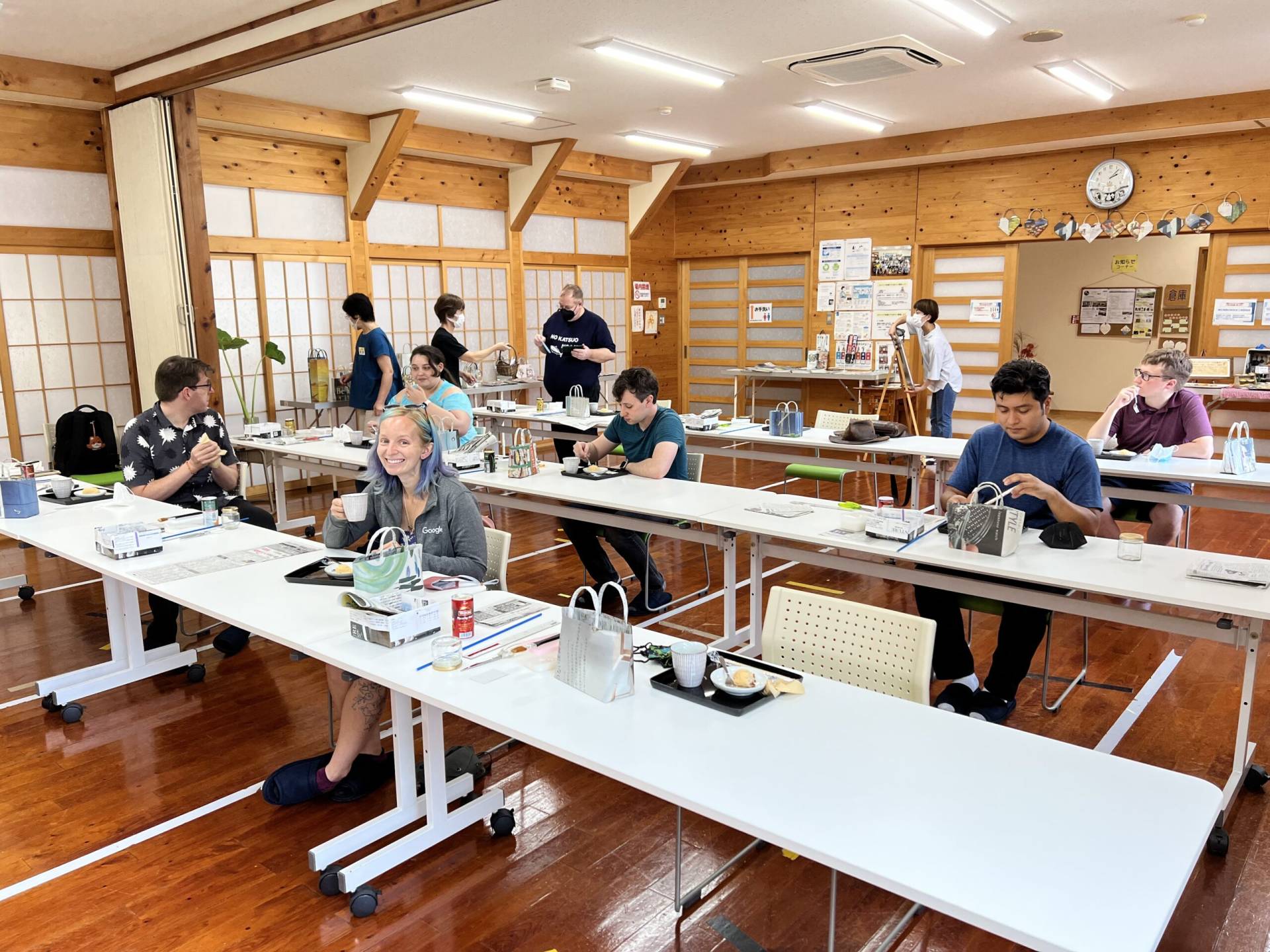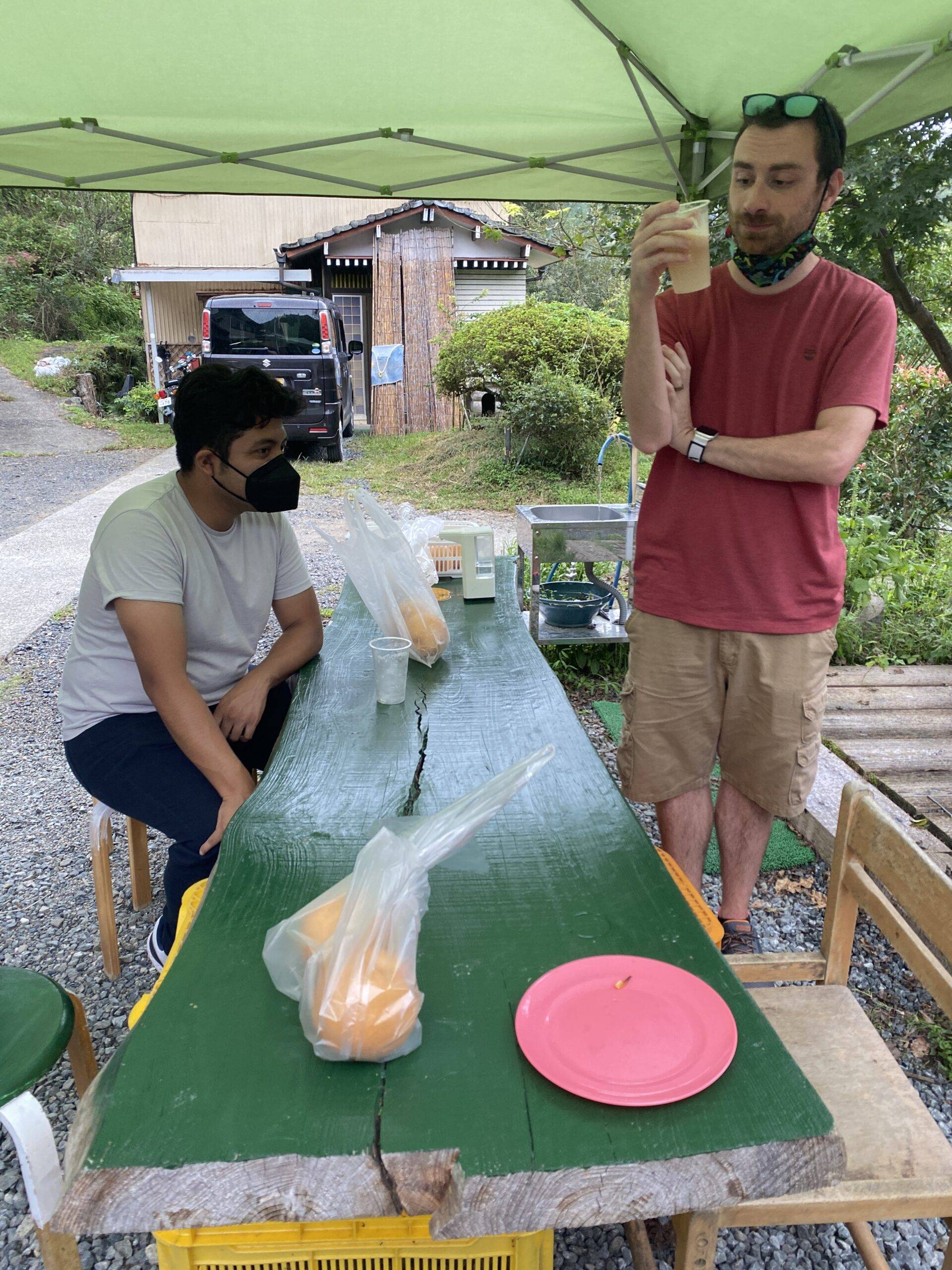 Today was the last day of the “rural relaxation” part of the trip (although most of us are staying longer to enjoy Tokyo for a bit), but we ended strong with exploring a gorge, roasting and brewing tea, pear picking, and a yakiniku dinner!