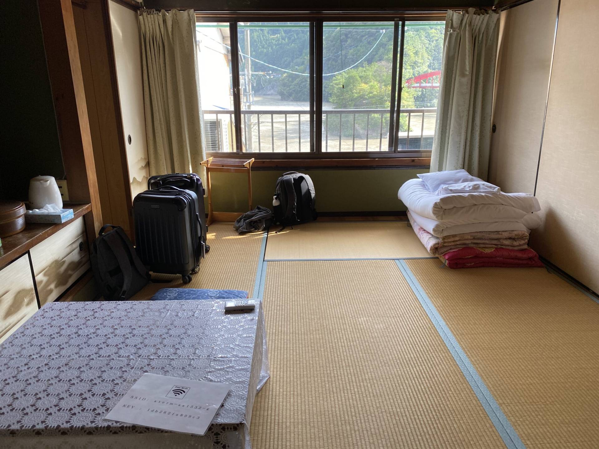 After a quick stop in Naruto to see the famous whirlpools, we did a little day-drinking, shopping, and eating in Udatsu, hiked to see a waterfall and river, and then settled down for the evening in Tsurugi at another riverside inn.